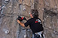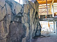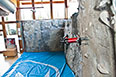 Rocódromo de hormigón esculpido, muy cortado. El cliente quería prioritariamente un elemento decorativo que pudiese tambiénservir de entrenamiento para sus clientes. Estas personas practican solo con un profesor de escalada.
